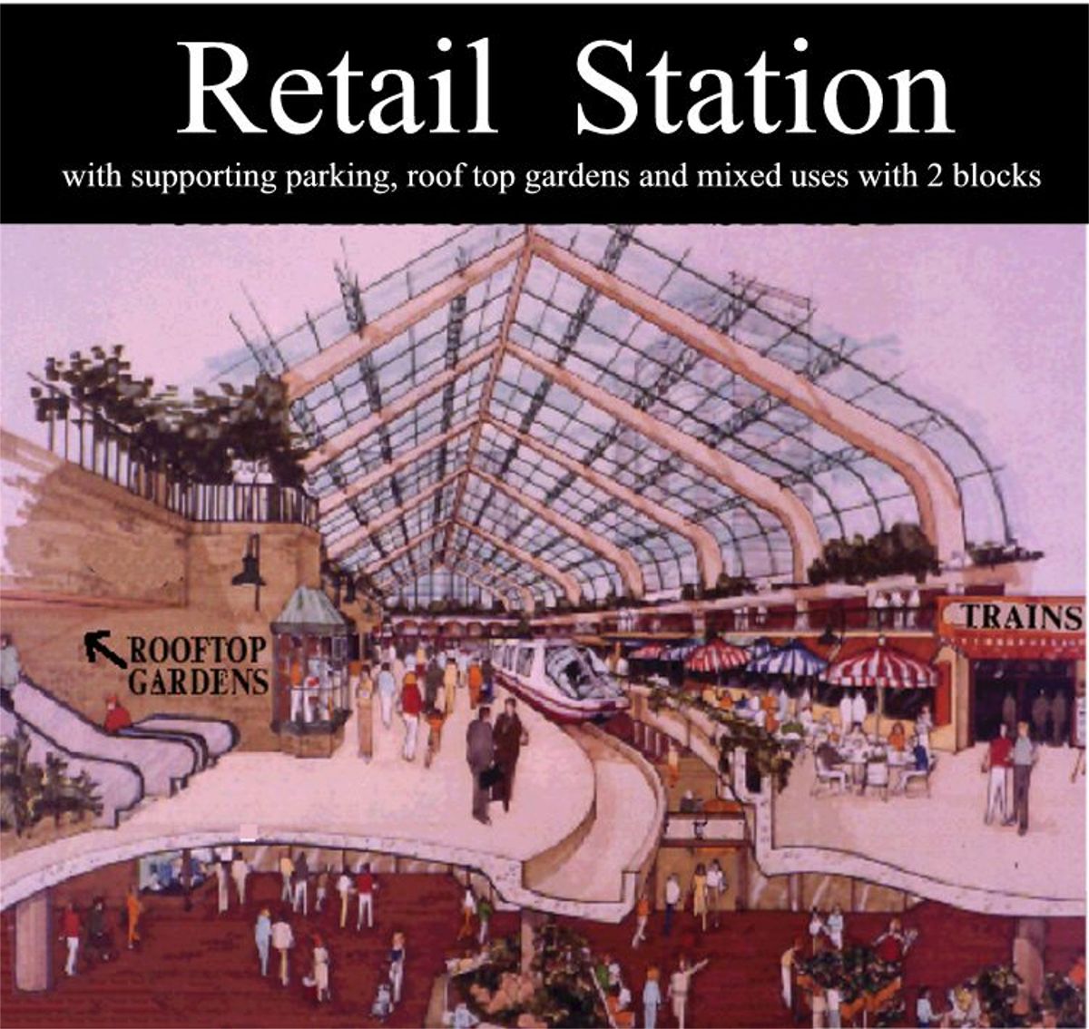 Since Skyways stations are above the ground level, this technology will grow transit oriented pedestrian concourses appealing to retailers, entertainment, advertisers and other travel venders. These are examples of how stations can be integrated into new pedestrian development and attract people to live on-line without owning a car by offering very convenient access to more options. For example in the 57 mile metro route people could get to75% of all the the happenings in Denver, malls, hospitals, campuses, office parks, amusements and recreation - all within a 2 block walk. Many of life's necessities could be in each little village and accessible with a short walk for common errands to the post office, bank, cleaners, grocery, hair salon, bar and restaurants. With metro rates of only $100 per month for unlimited use, people could be attracted to give up their car ownership and garages in exchange for this old fashioned pedestrian lifestyle.